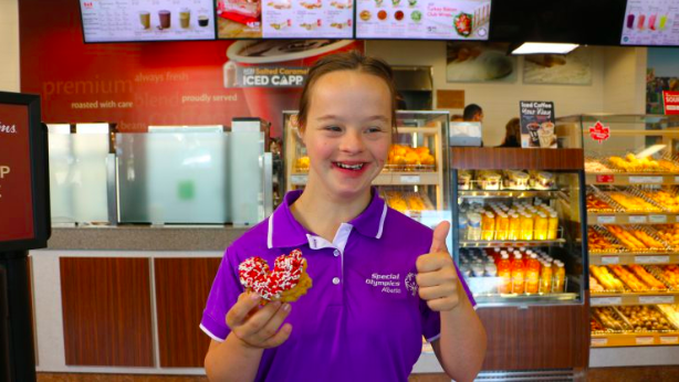 Sarah and her husband Trent have really taken a strong initiative to include the special needs community in Tim Horton’s vision and environment. This is the second year that Tim Horton’s has been a key sponsor for the special olympics in our community, and the support has resulted in tremendous success. All proceeds donated to this cause go towards raising money for the special olympics events, creating a lifetime of memories for those participating in the olympics and their close loved ones. In addition to this, Sarah has made sure to give plenty of opportunities for people with disabilities to apply and actively be involved in the workplace. She has put emphasis on the fact that it is not just another simple job, the special needs positions are just as important as the other employee positions in the workplace.