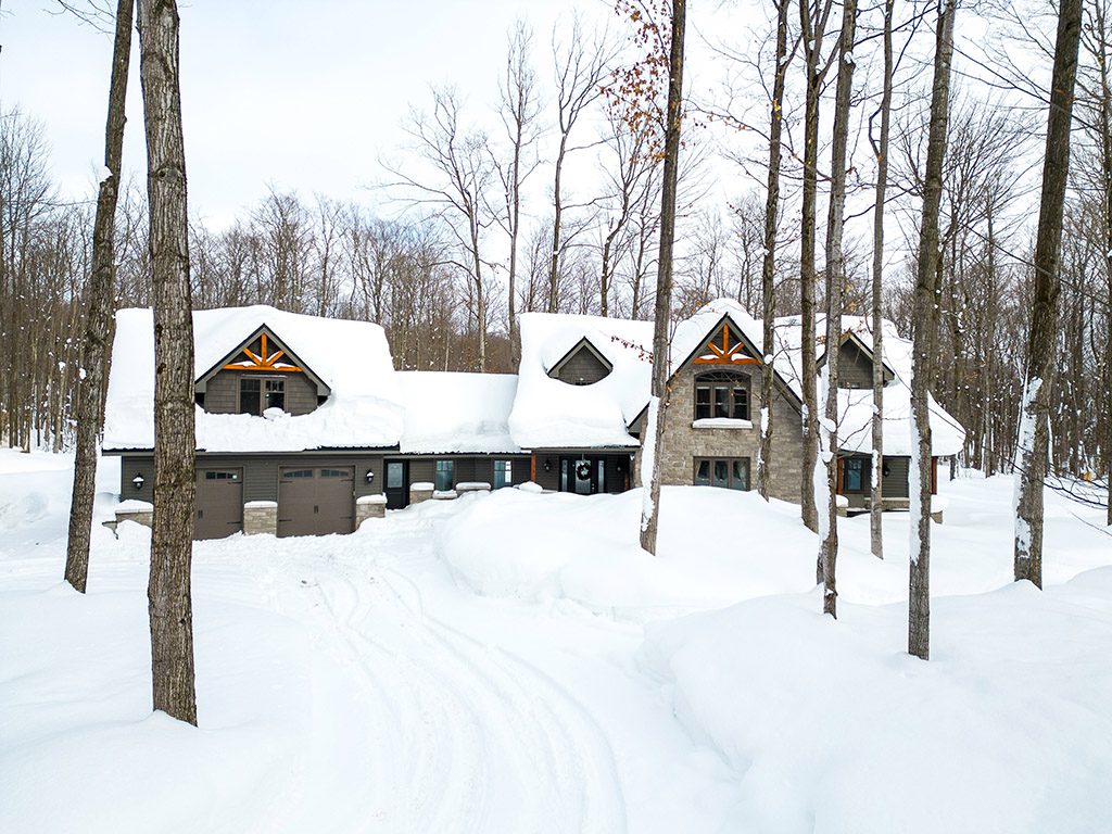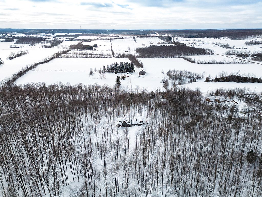 Private sanctuary on 25 acres of serene Meaford countryside, where mature trees and tranquility await. This custom-built retreat offers a blend of luxury and comfort, designed to embrace the beauty of its natural surroundings. A short drive to Downtown Meaford and the beautiful Georgian Bay.