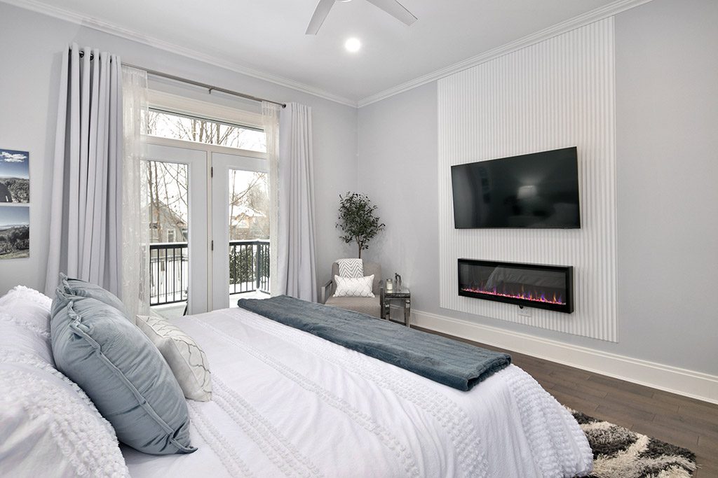 The fully finished lower level offers 9ft ceilings, heated floors throughout, a cozy recreation space with a tile surround gas fireplace and built-ins and two large bedrooms with ample closet space. A shared bathroom and a generous storage room complete this versatile living area.