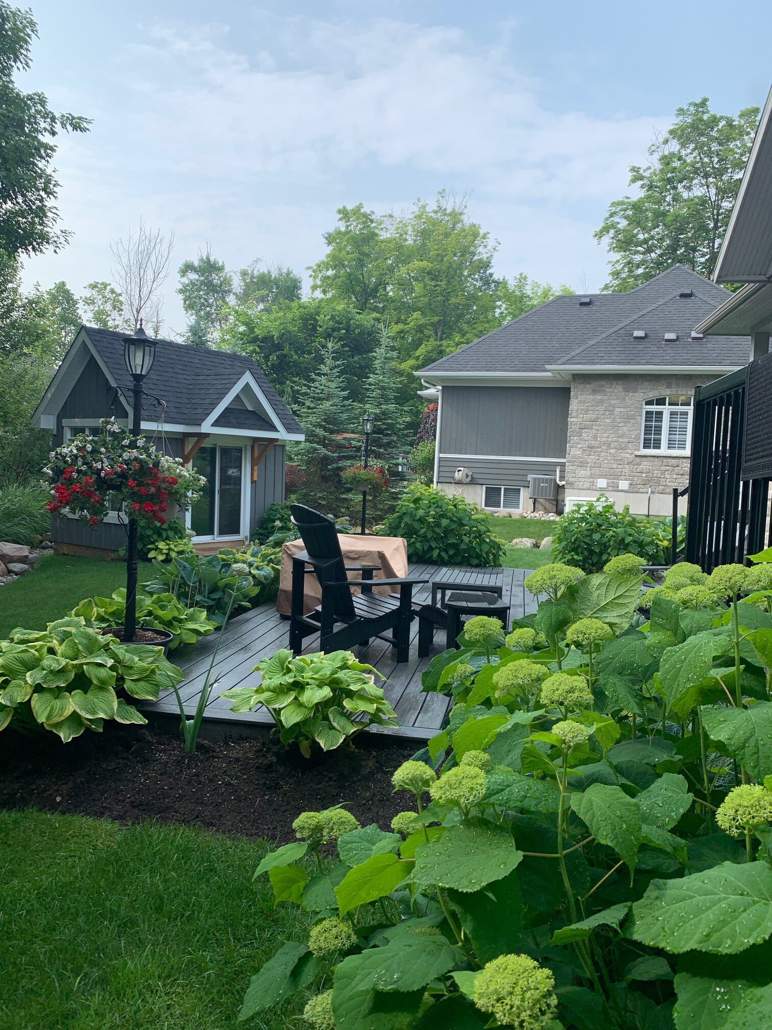 Additional highlights include a double garage with convenient home access, epoxy floors and gas heater unit, covered front porch and a private backyard with sprinkler system, large lower composite deck and 2 upper decks, perfect for gatherings or quiet relaxation. You’ll also find outside an office/studio with electricity, A/C and heated floor.