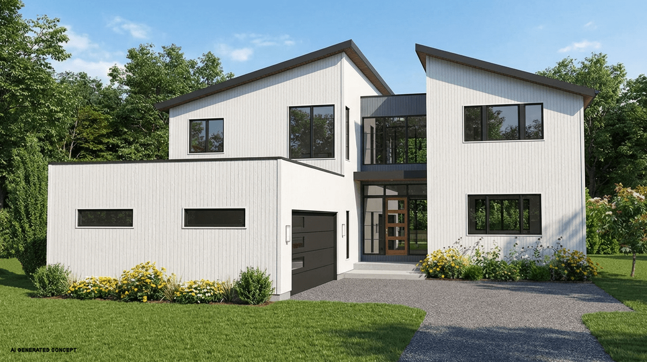 The proposed architectural concept by builder Kuhlhaus Custom Homes, showcases a stunning contemporary residence with over 3,200 square feet of above-grade living space, featuring 4 bedrooms and 4.5 bathrooms. The main floor centres around an expansive 22’ x 24’6” great room that flows into a gourmet kitchen with a walk-in pantry and walk out to a covered back deck area. The main floor also features a mudroom, powder room and a private 17’ x 19’ studio provides a quiet workspace. The 1344sqft finished basement adds a massive recreation room, hobby room, and a flexible space for a theatre or gym.