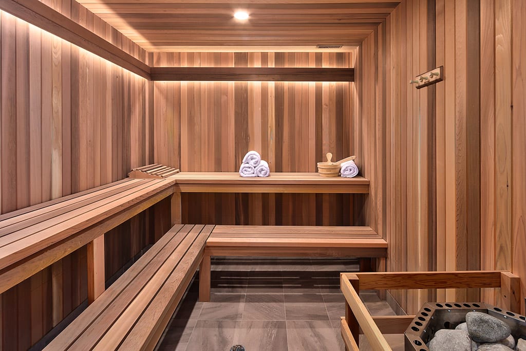 Recreation is the focus of the lower level living room which has a gas fireplace and wet bar for entertaining. Next to the bar, a glass wall encloses a wine cellar with back-lit shelves to store your vintages. Also on the lower level, you will find 2 bedrooms with a full shared bath, sauna and powder room.
