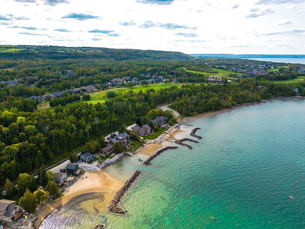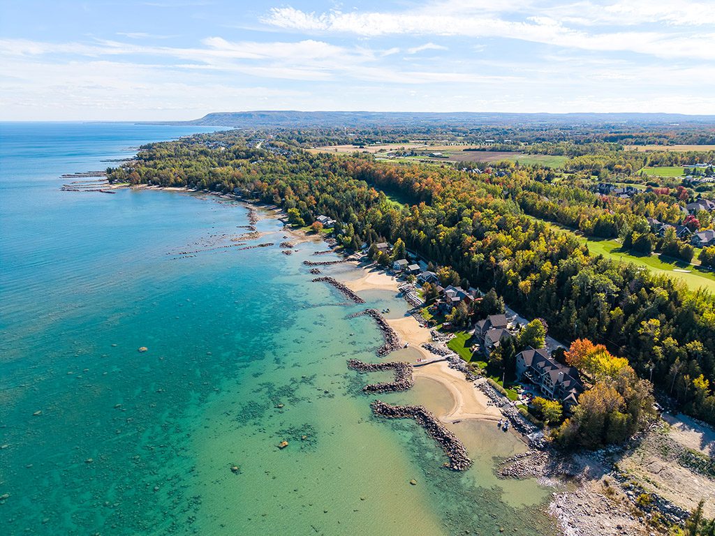 Discover the ultimate waterfront sanctuary on Lake Drive, where 200ft of rare sandy beach meets the sparkling blue of Georgian Bay. In a region known for its rocky shoreline, this expansive stretch of sand offers an unparalleled setting for swimming, paddle-boarding, boating and so much more — all just minutes from Thornbury’s charming downtown and the areas private ski and golf clubs.