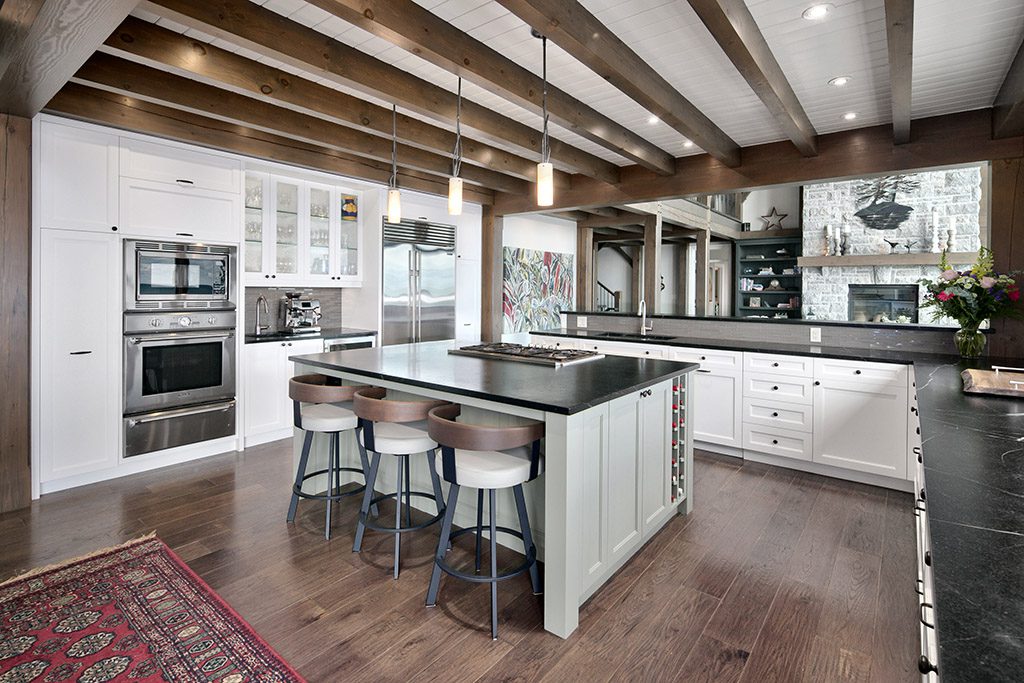 Spanning over 7,500 square feet, this exceptional custom home is designed to bring together family and friends in comfort and style. Inside, the vaulted 26ft ceilings in the great room with exposed wood beams, floor-to-ceiling windows, and a stone surround Rumford wood fireplace captures the essence of relaxed luxury. Inside, the craftsmanship is evident in every bespoke detail. Grand, sun-drenched living spaces flow effortlessly into the professional-grade chef’s kitchen, a welcoming hub designed for hosting intimate soirées and generational gatherings.