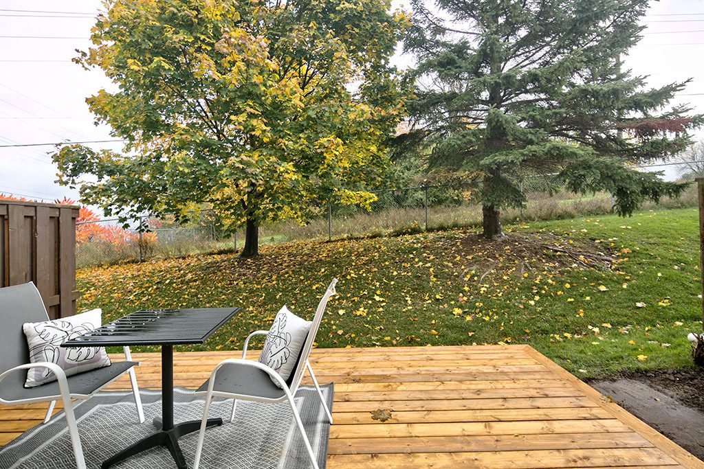 Step out onto the deck in the backyard, where you can enjoy a patio with views of the serene trees, making it a perfect spot to relax and entertain.