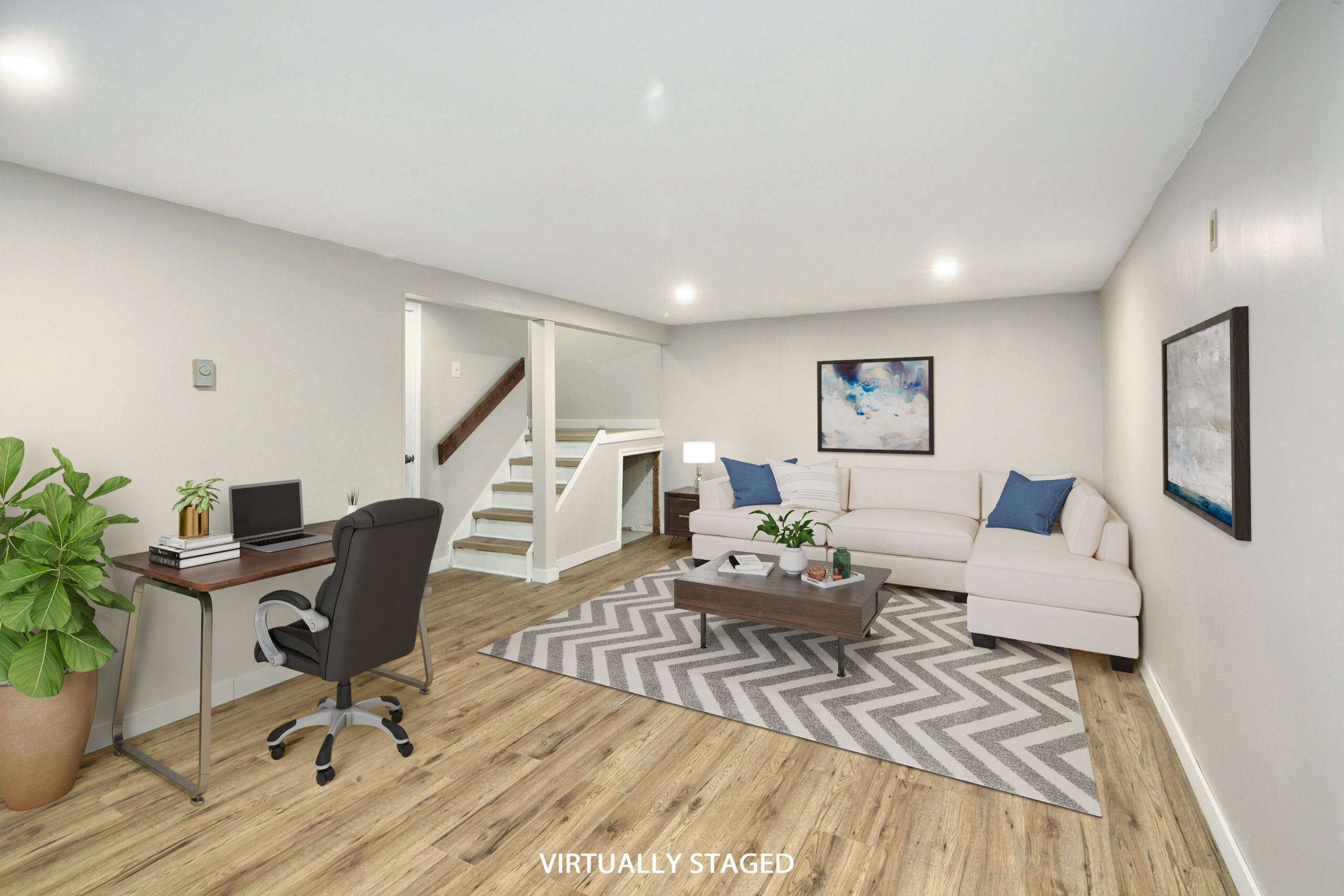 Step inside to discover a bright and open-plan main floor that has been thoughtfully upgraded with NEW 2023 paint, doors, door handles, and all-new lighting. The flooring and baseboards have been replaced, breathing new life into the entire space. The modern white kitchen is a true standout, featuring updated kitchen cabinets and handles, along with updated stainless steel appliances, including a dishwasher, fridge, stove, and over-the-range microwave. The living space includes a walk out to the backyard and upstairs features 3 bedrooms and a bathroom. The lower level has been finished to offer a large family room!