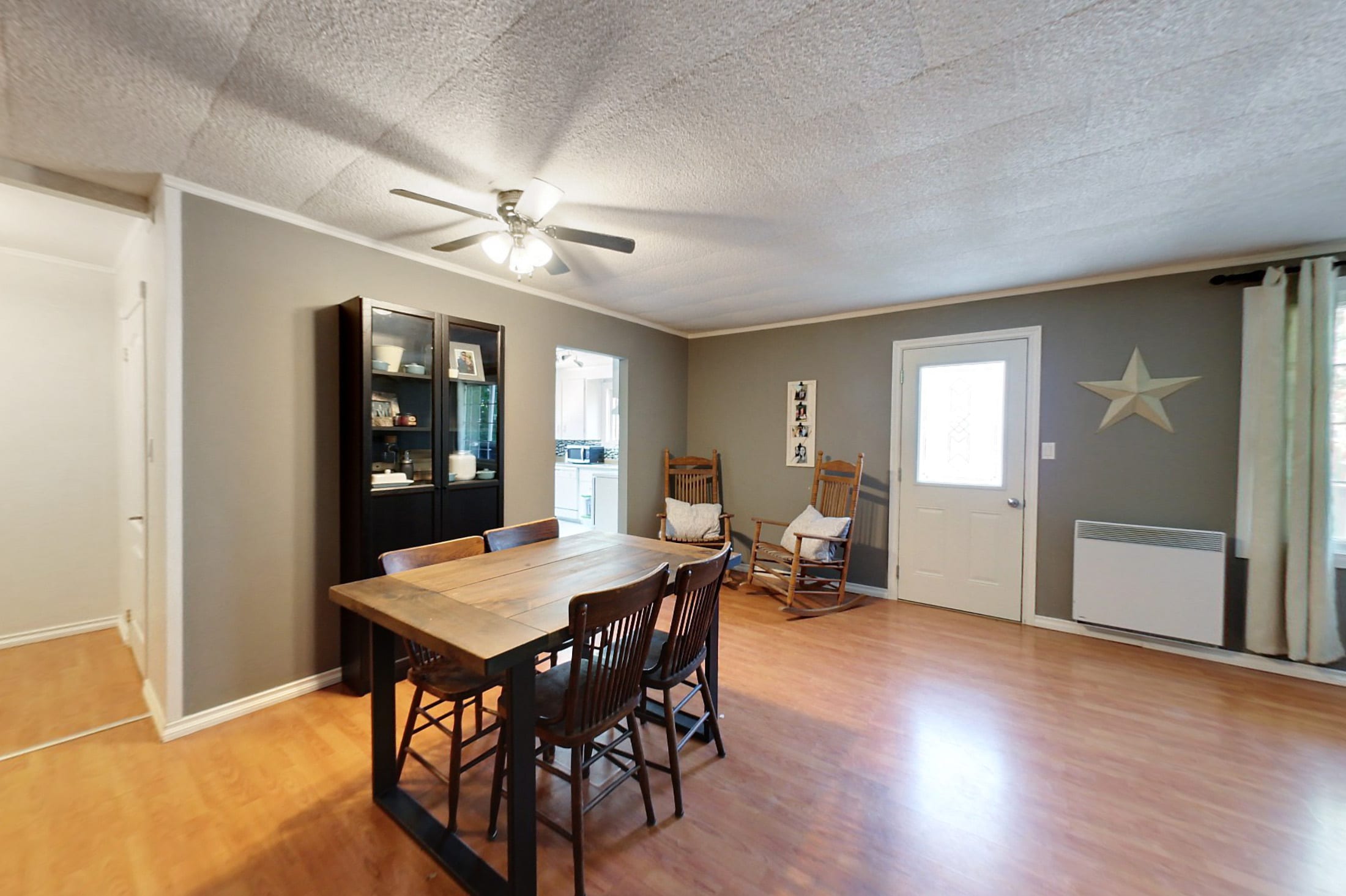 The upper level apartment is similar to the lower level, but with the addition of a third guest room and laundry nook off of the entryway. A balcony overlooks the front yard and provides a nice view. Access is from a separate stairway on the lower level.
