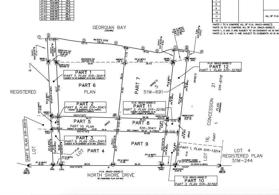 Approx 186ft of waterfront. Selling Part 1 as shown in the images. Taxes to be assessed.Potable water well. The lot has been confirmed by Tiny Township to have the capacity for a septic system. The lot has been confirmed by Tiny Township to have space to construct a driveway running off North Shore Dr. Building permits to be obtained by buyer.