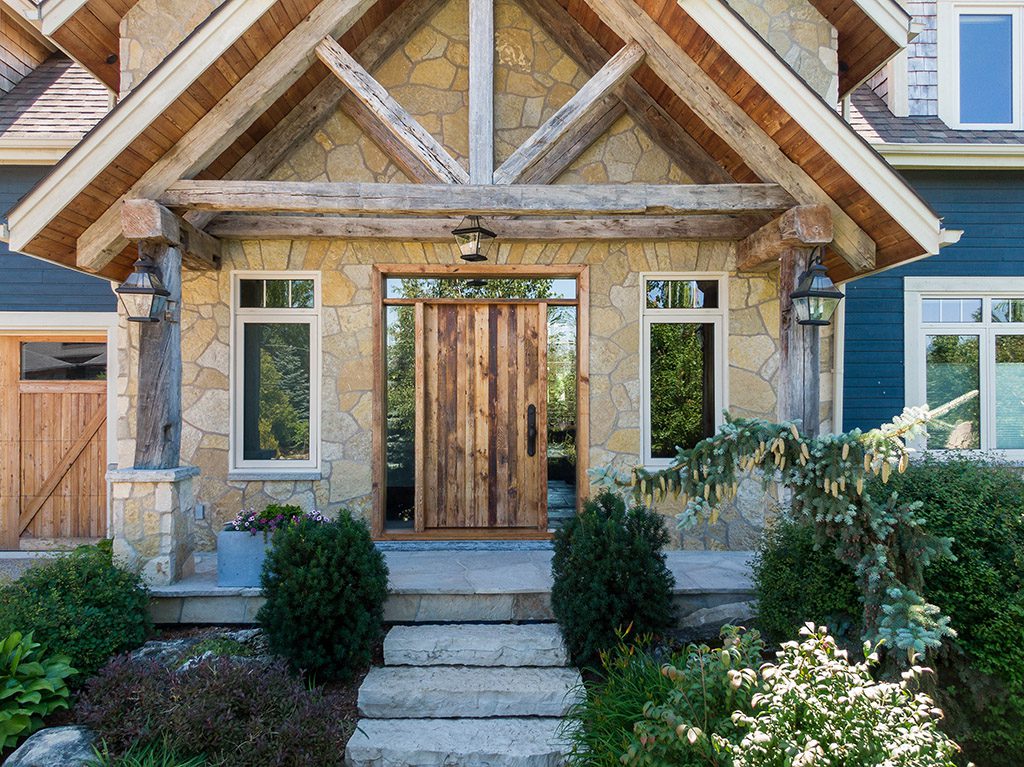 Stunning Lora Bay Chalet style home features spectacular use of reclaimed wood throughout – floors, ceilings, doors and trim – setting it apart from other homes in the area. With over 5000 SF of finished space, 5 bedrooms, 4 ½ total bathrooms makes this a wonderful home in which to entertain family and friends. Beautiful hand hewn trusses, soaring hemlock clad ceilings and exquisite elm flooring set the tone of this open concept designed home. Relax with friends in front of the 2-storey stone clad wood burning fireplace while you enjoy the views of the extra deep landscaped lot.