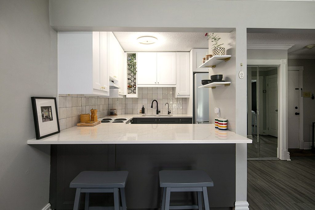 Step inside this move-in ready condo & be greeted by a cozy entryway leading to the well-appointed kitchen that just underwent renovations in 2022. It showcases new white quartz countertops, a new fridge, trendy grey lower cabinetry and white uppers. Blending style and functionality the new kitchen also offers great storage a spacious prep area & space for 4 at the breakfast bar.
