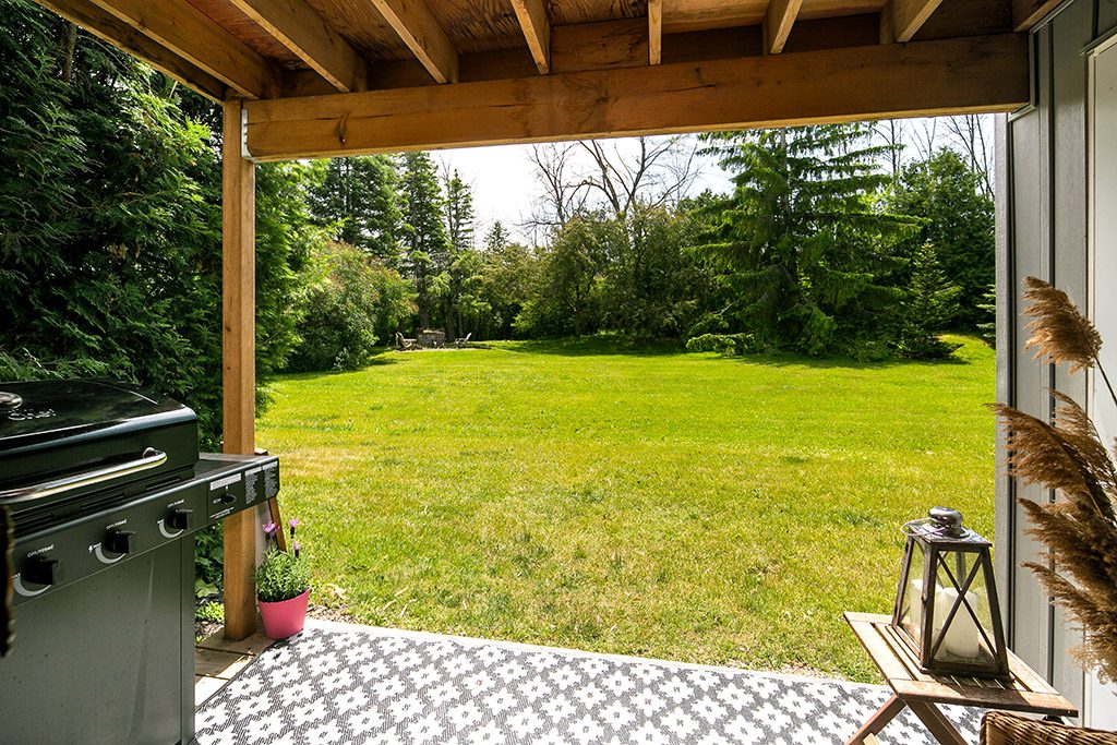 The open concept living/dining room features luxury vinyl flooring (2018), an efficient gas fireplace, and sliding glass doors that walk out on to your own private patio overlooking green space & a path through the trees leading to the Georgian trail! This is the perfect spot to enjoy a summer bbq or unwind and soak in the surrounding beauty. A 4-pc bathroom with updated vanity offers a thoughtfully designed space in which to indulge in your daily self-care routine. The inviting primary suite boasts a generous-sized window that provides delightful views of the mature trees and green space.