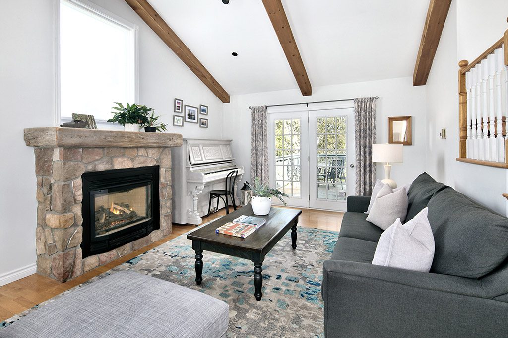 The main floor boasts a bright open-concept kitchen and dining area, perfect for entertaining. The living room is a warm and inviting space with wood beams, a gas fireplace with a striking stone surround, and doors leading to the back deck. Step outside to enjoy the hot tub and landscaped backyard, complete with mature maple trees, cedar tree privacy and stone walkways. The primary suite is conveniently located on the main level and features a walk-in closet, a private 3pc ensuite and direct access to the deck—a perfect place to start your day with a coffee in hand.