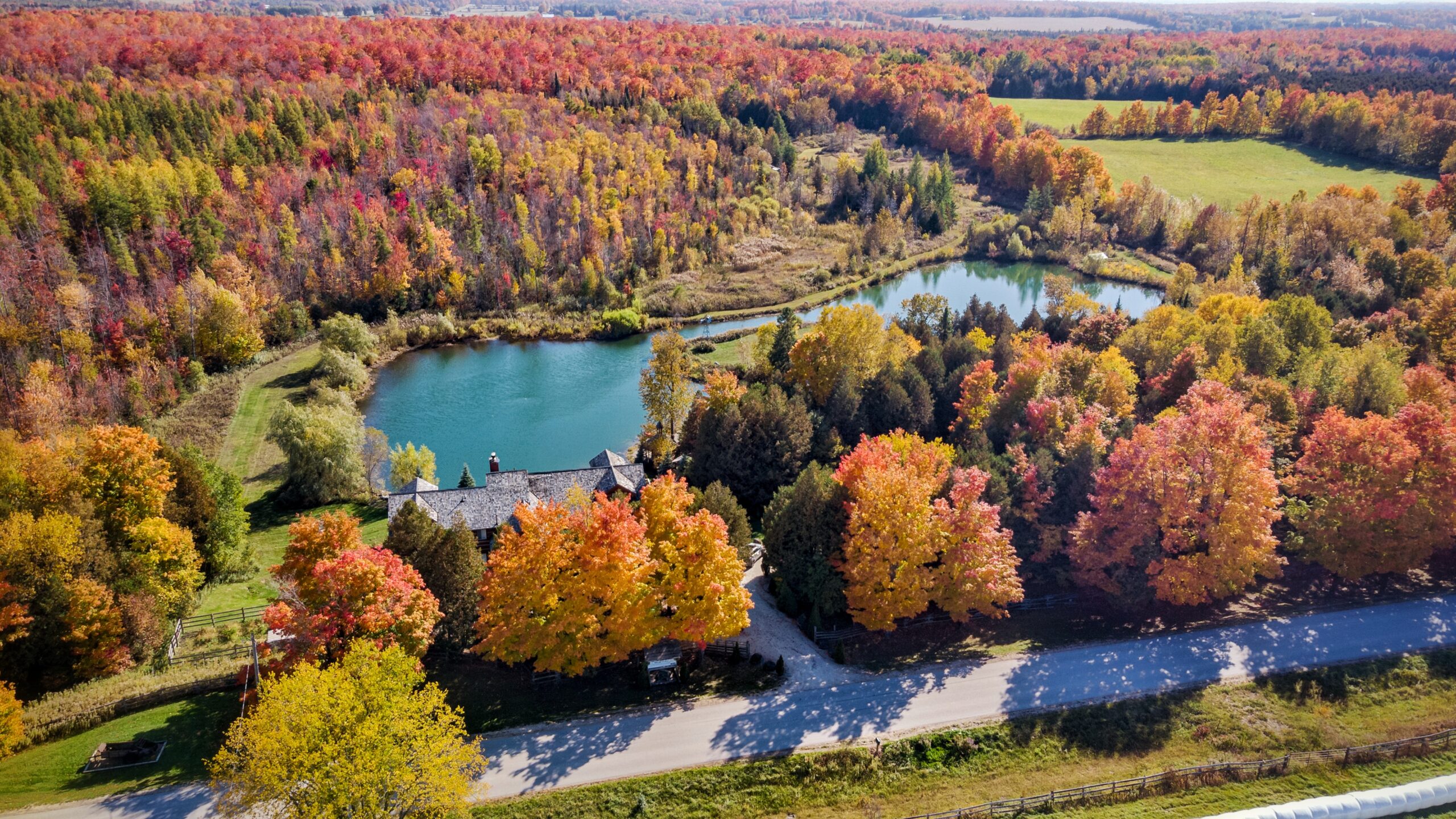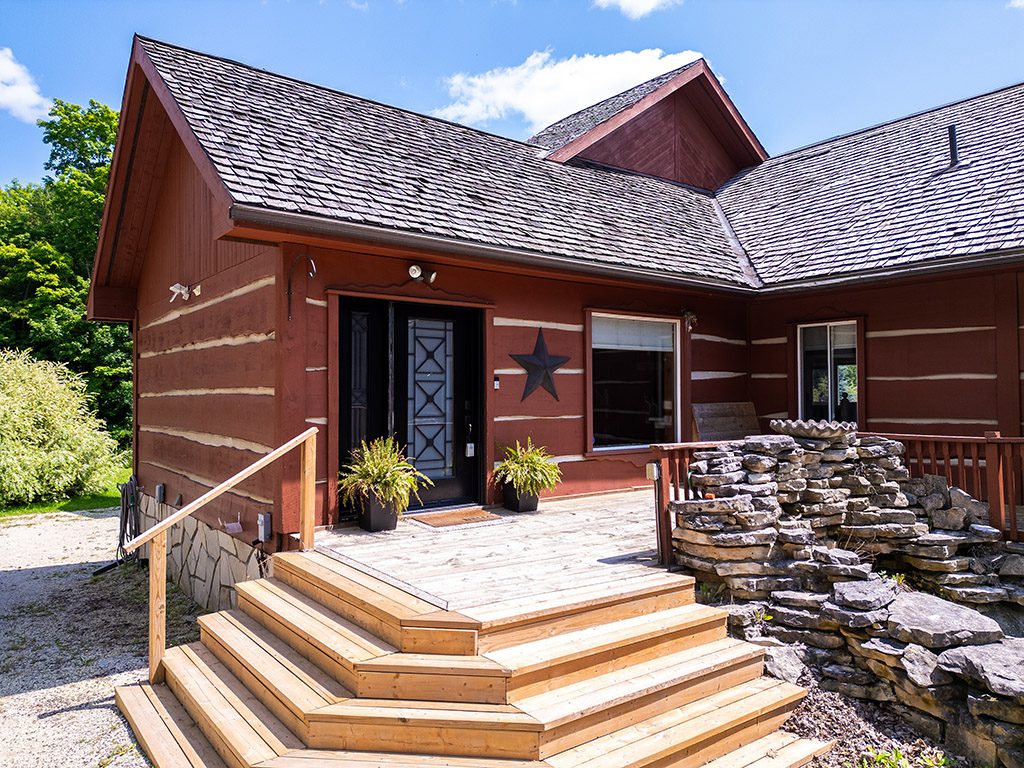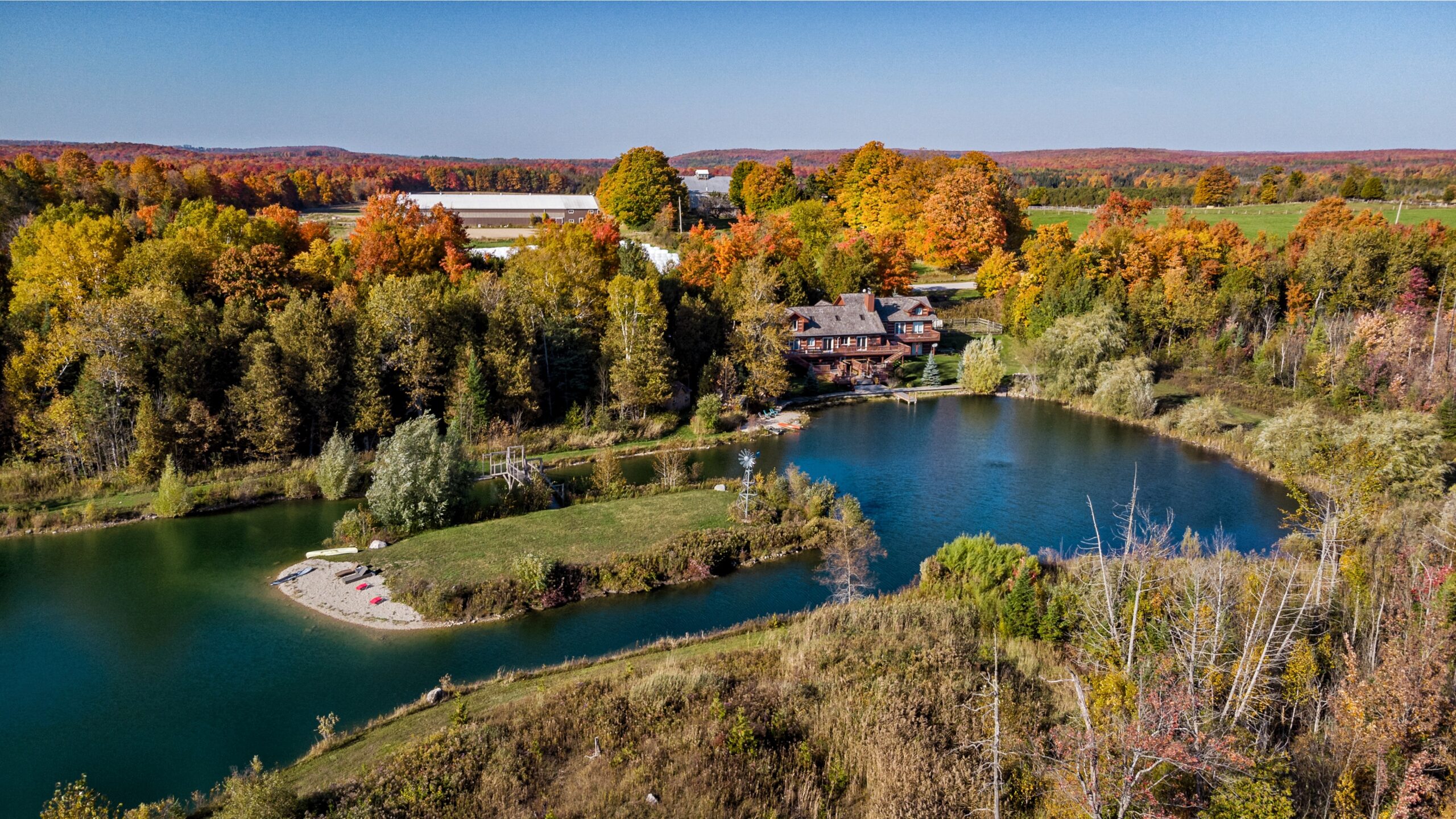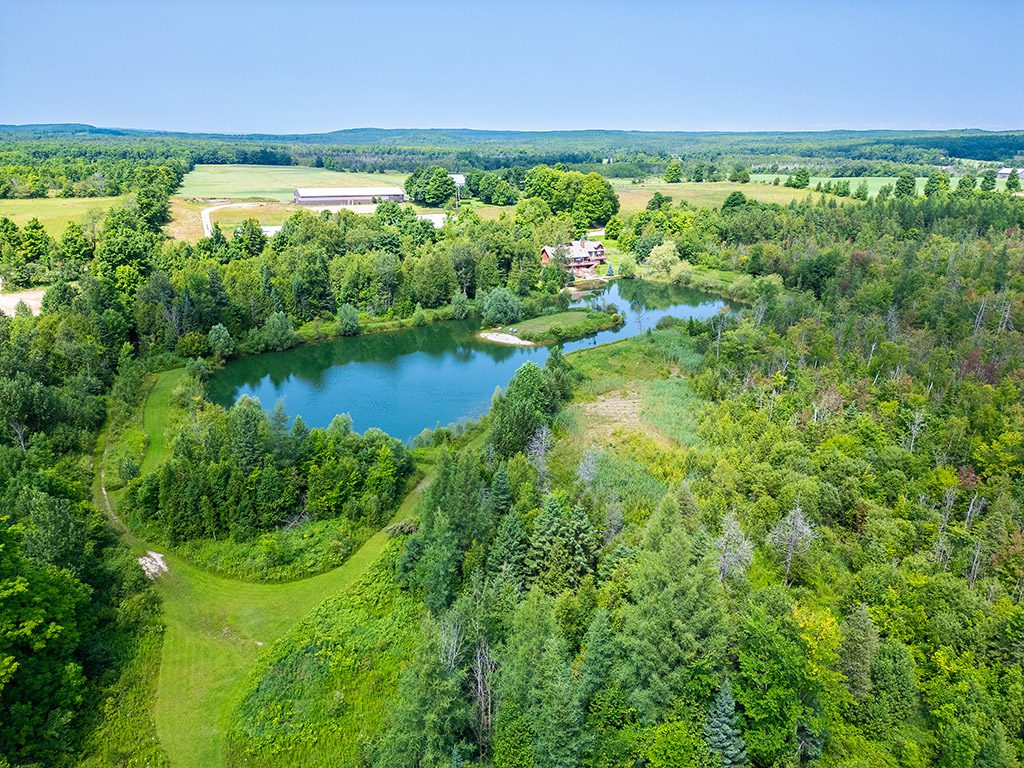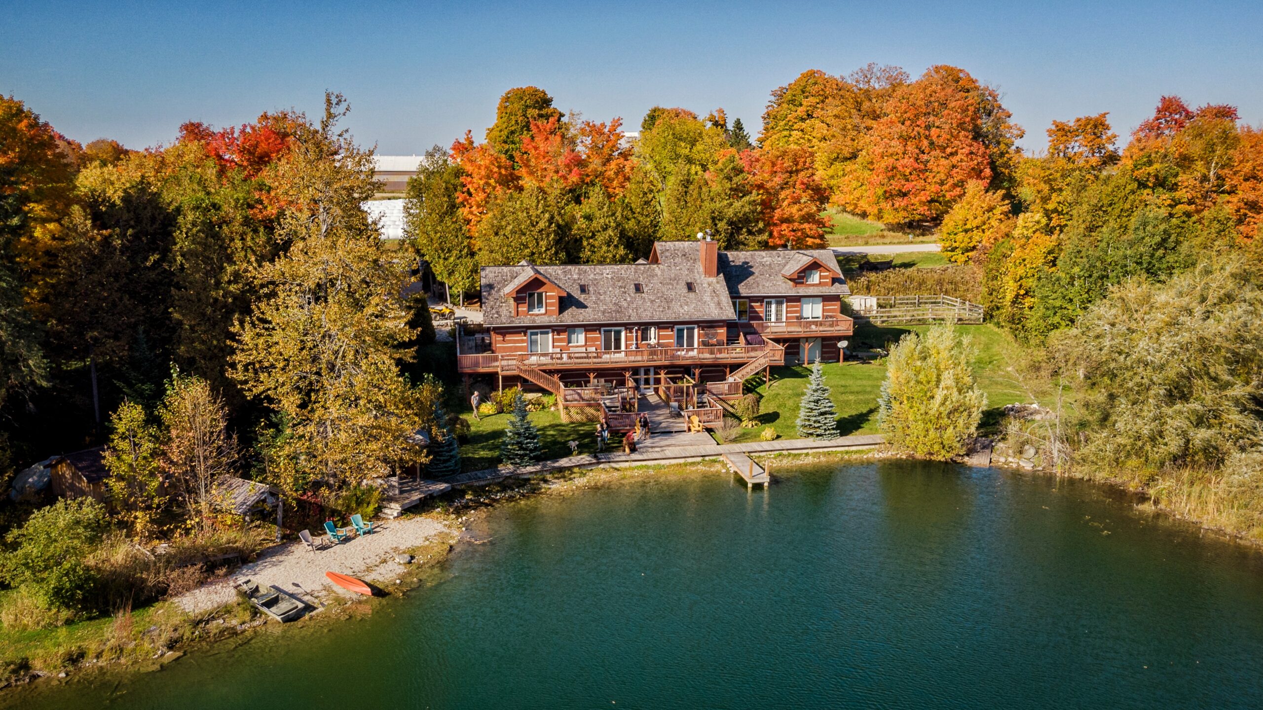Welcome to your peaceful luxury retreat! This stunning 6 bedroom log-sided home is fully furnished both inside and out, offering a haven for a serene getaway, the ideal family compound. Situated on 50 acres of private land enveloped in lush greenery, it boasts a prime location backing onto a tranquil spring-fed lake with island, complete with two beaches for relaxation.