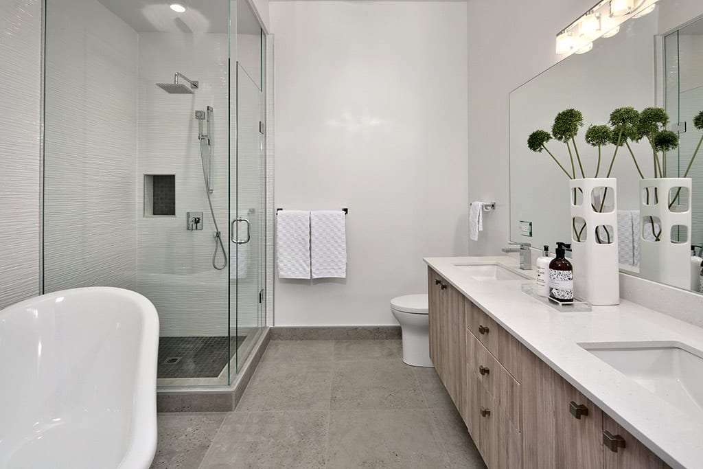 The main floor master suite boasts a spacious walk in closet and spa like 5pc ensuite bathroom with heated floors, gorgeous stand-alone tub and walk in shower.